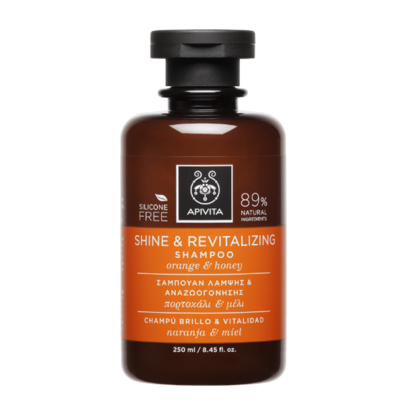 Apivita Champô Brilho e Vitalidade enriquecido com vitaminas e minerais revitaliza o couro cabeludo, confere brilho, vitalidade e força aos cabelos, protege-os contra o envelhecimento prematuro, poluição e danos provocados pelo styling e previne as pontas espigadas.