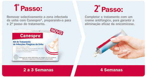 Canespro® Unhas é simples de utilizar, sendo a primeira etapa de um tratamento em dois passos que elimina os fungos das unhas rapidamente e com progressos visíveis diariamente.