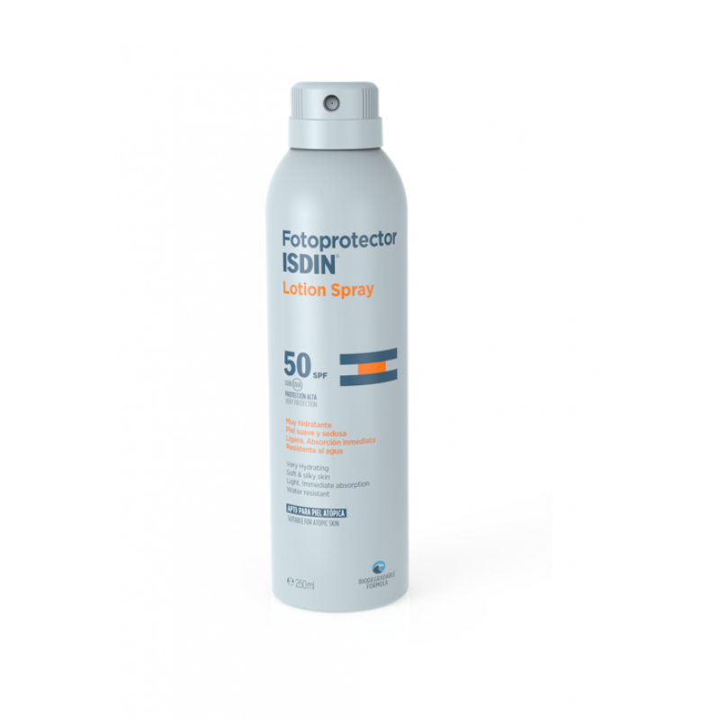 Isdin Fotoprotetor Isdin Loção Spray SPF 50 é um spray com fator de proteção solar elevado (SPF 50), especificamente desenvolvido para aplicação tanto na pele molhada como seca.