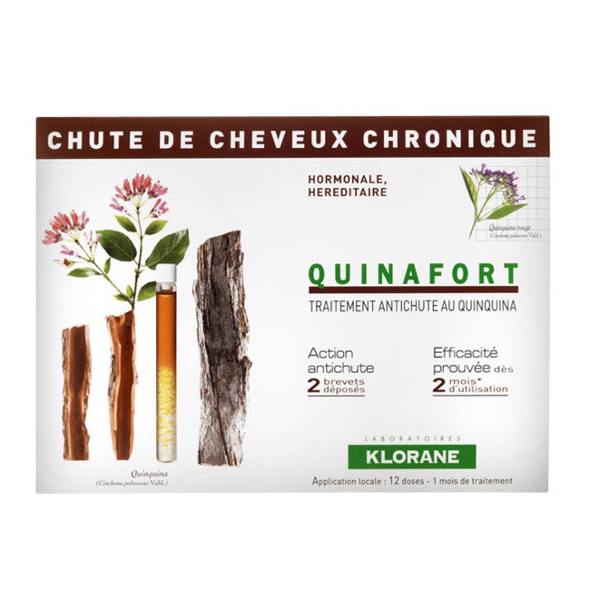 O extracto activo de Quinquina, com propriedades anti-queda demonstradas e patenteadas pelos Laboratórios Klorane, reactiva a microcirculação cutânea para favorecer os mecanismos de crescimento. A sua acção é completada pelo α-pineno, que favorece o crescimento celular, pelo ácido β-glicirretínico que contribui para a regulação da actividade da enzima responsável pela queda de cabelo e pelo extracto de alecrim, que purifica o couro cabeludo, preparando-o para receber os princípios activos anti-queda.