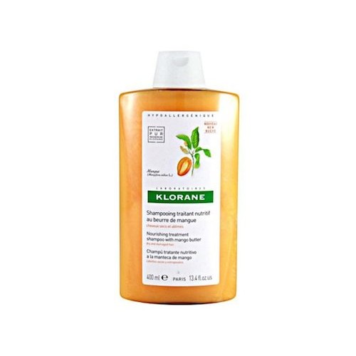 O champô com manteiga de manga KLORANE lava, nutre e repara o cabelo.