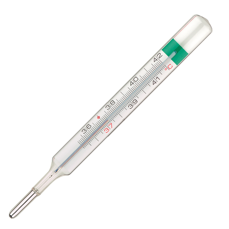 O termómetro clínico ecológico, com lente de aumento, 100% Mercury free (sem mercúrio).