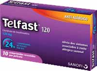 Telfast 120 contém cloridrato de fexofenadina, que é um anti-histamínico.
